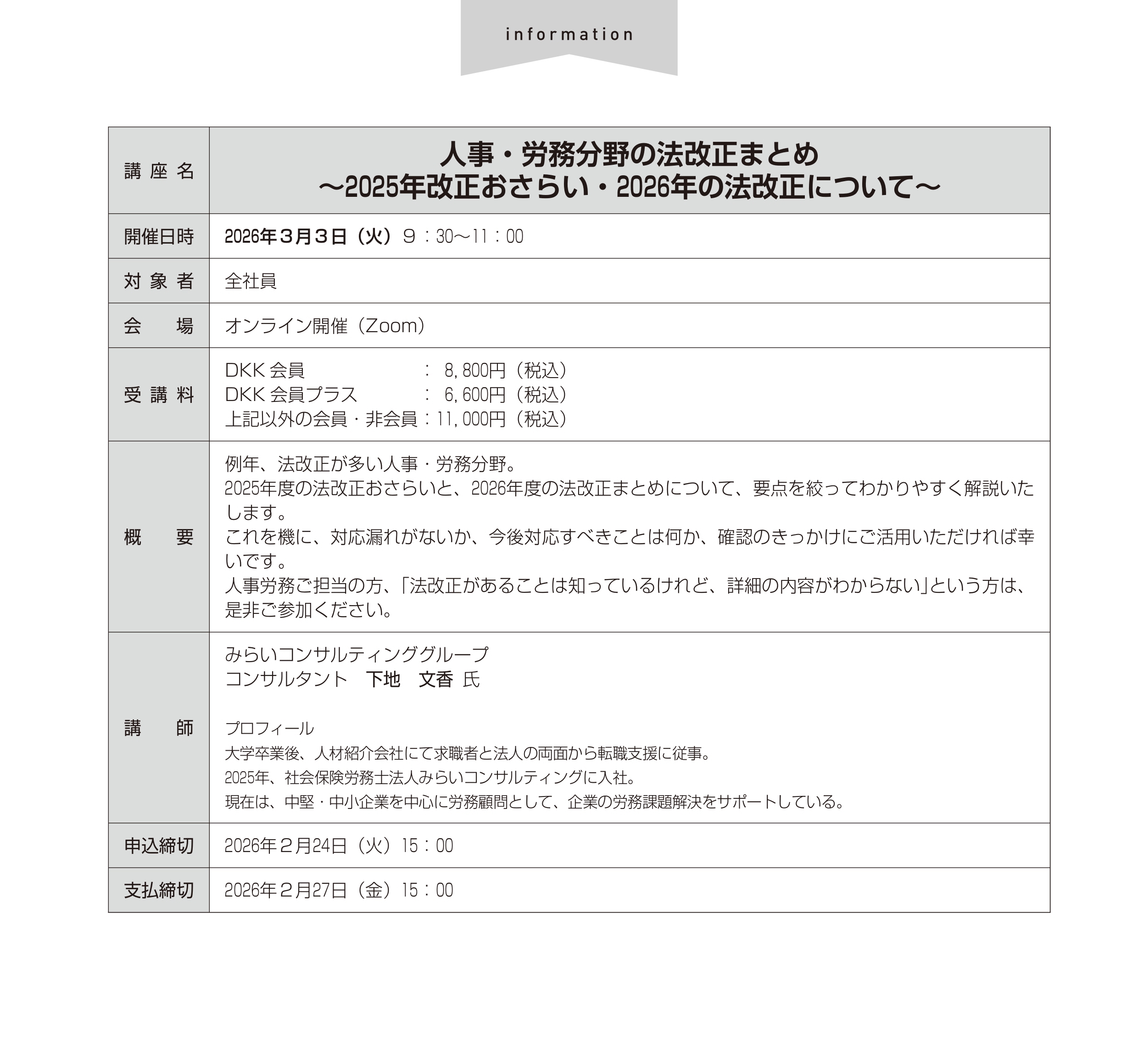 人事・労務分野の法改正まとめ ~2025年改正おさらい・2026年の法改正について~